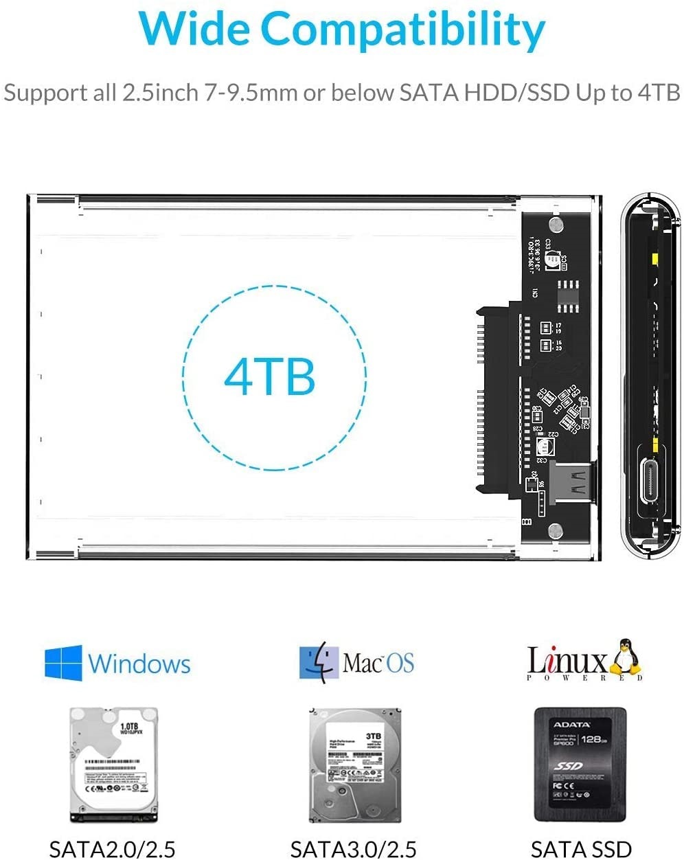 - Suitable for all 7mm/9.5mm 2.5-inch SATA 1/2/3 HDD or SSD.