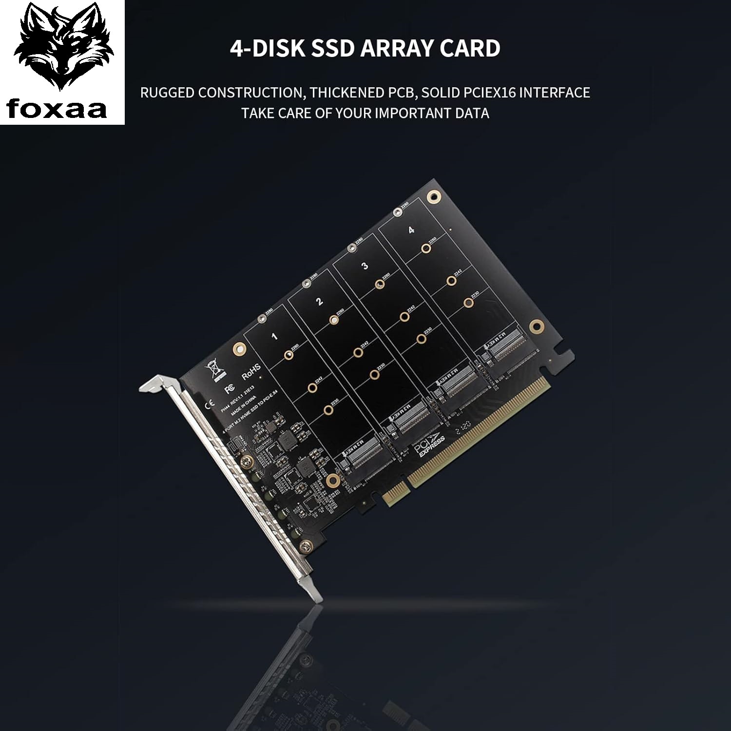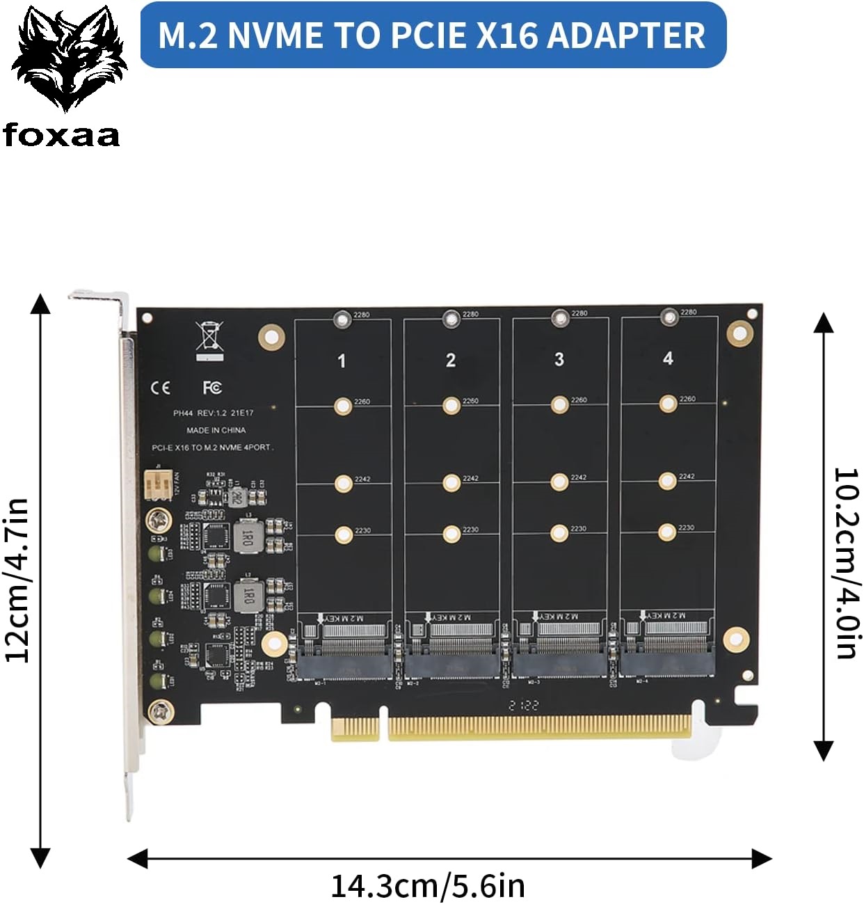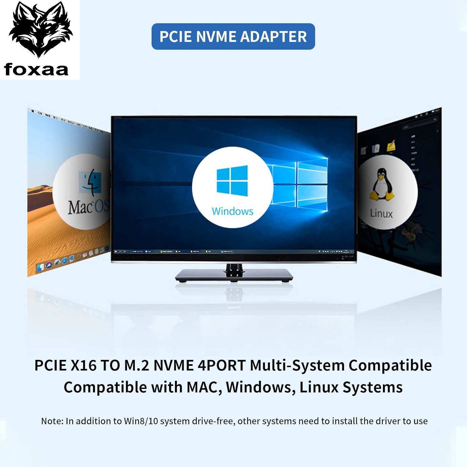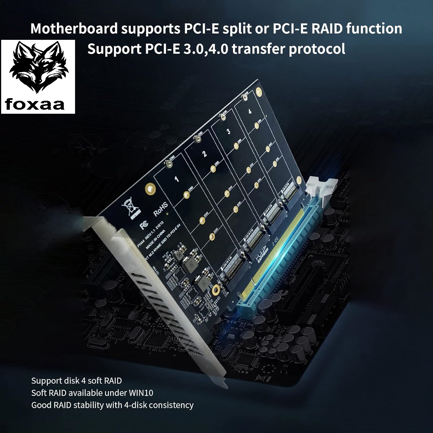 4 M.2 NVME SSD (M-key) to PCIE 3.0/4.0 X16 RAID card, multi-system compatible for Windows/Mac OS/Linux.