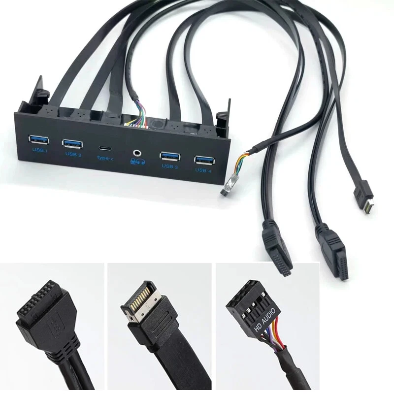 foxaa Extra USB Front Panel, USB Hub with 4-Port USB 3.0/ Audio Output Microphone Input USB C Port, Optical Drive 5.25-inch Panel Computer Expansion Board for Desktop