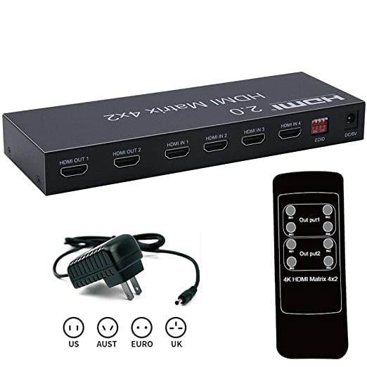 Support HDMI1.4b version. 2. Support ARC function. 3. Support 3D video format. 4. Support maximum resolution of up to 4096*2160/30Hz. 5. The TMDS clock is 320Mhz at the maximum rate of 3.2G. 6. Support 8/10/12 bit deep color. 7. When the resolution is 1080P or less, the standard AWG26 cable is supported. The input transmission distance is 15 meters, and the output transmission distance is 25 meters. 8. When the resolution is 4K, the standard AWG26 cable is supported. The input distance is 12 meters, and the output transmission distance is 15 meters. 9. It supports 3.5 mm stereo audio interface output and fiber output. 10. It supports switching or distributing 4 way HDMI input into 2 way HDMI output. 11. Support 5.1 channels. 12. Support 5V-12V wide voltage input.