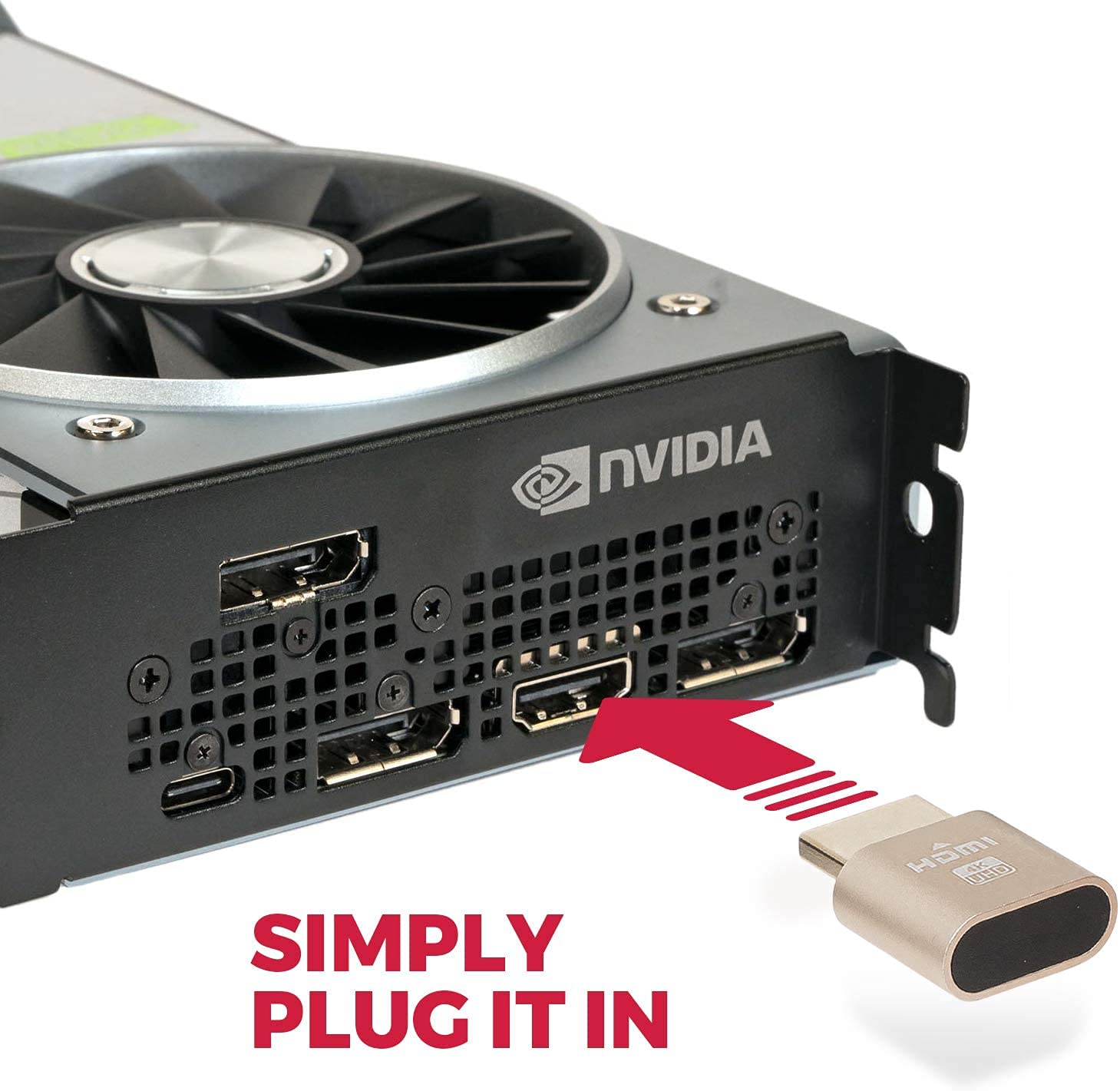 - Once plugged, the headless PC detects a connected display thus enabling the GPU.
