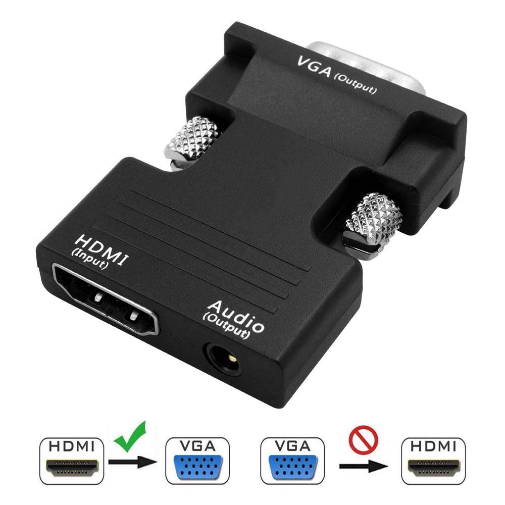 • This VGA to HDMI Adapter allows you to convert VGA output from most PC and laptops to your HDTV. You need to connect both video and audio signals from your computer to your TV. Share your video /audio/data from computers or old-styled notebooks,destops,laptops that has only VGA ports to any