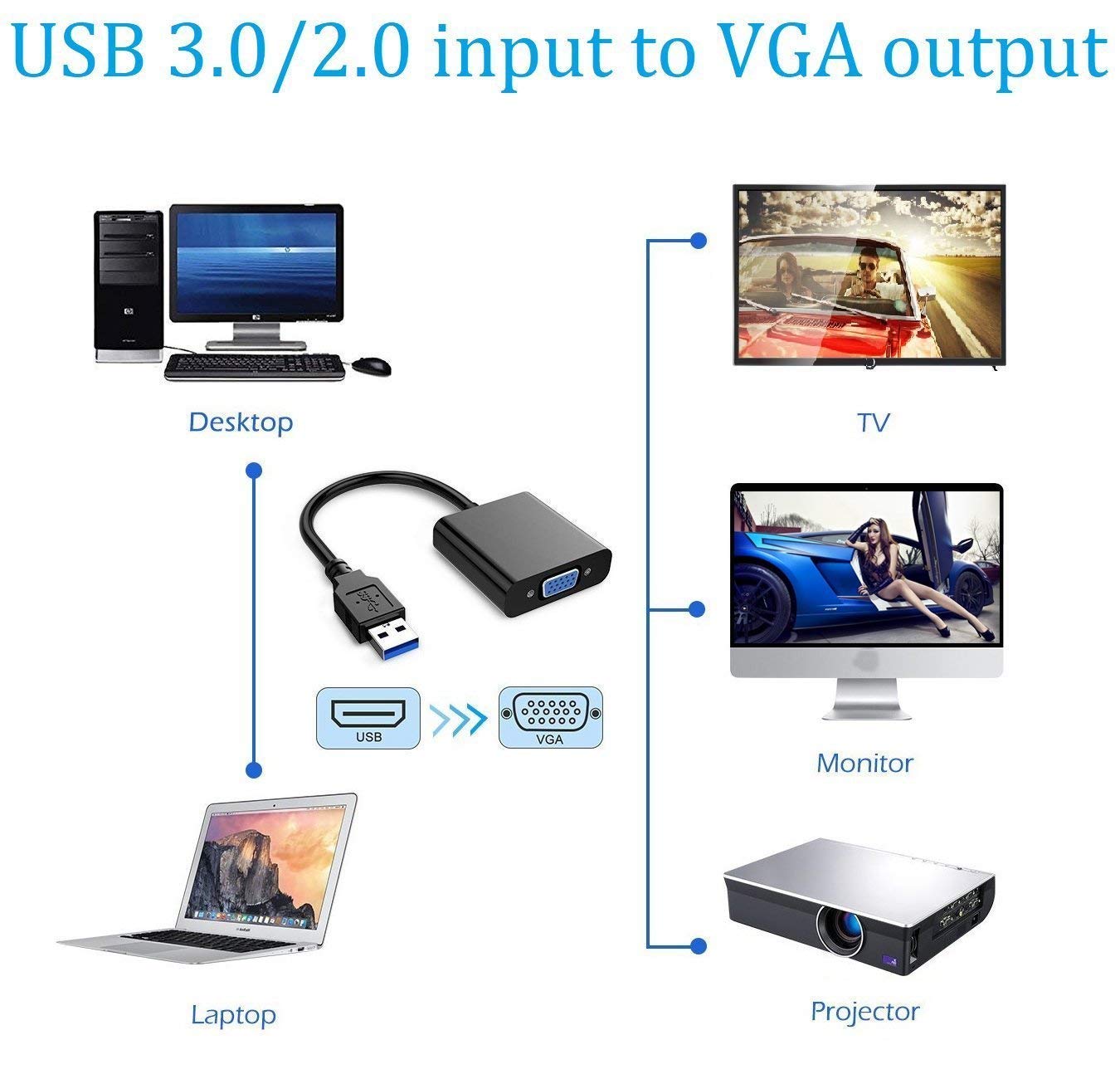 USB 3.0 to VGA Adapter 1080P Multi-Display Video Converter- PC Laptop Windows 7/8/8.1/10,Desktop,Laptop,PC,Monitor,Projector,HDTV